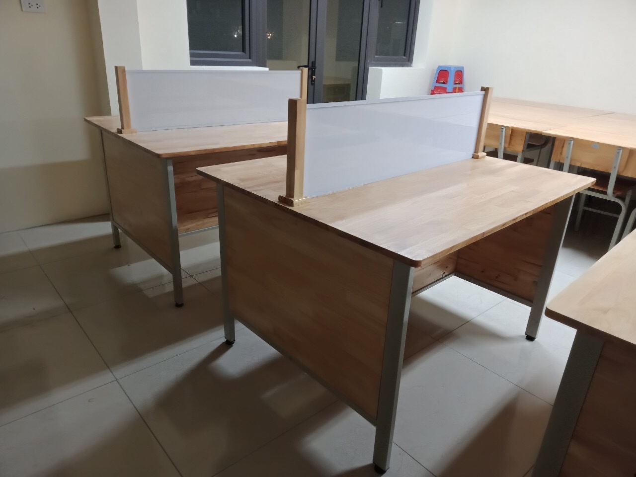 - Bàn có vách ngăn bằng kính mờ dày 5 (mm).