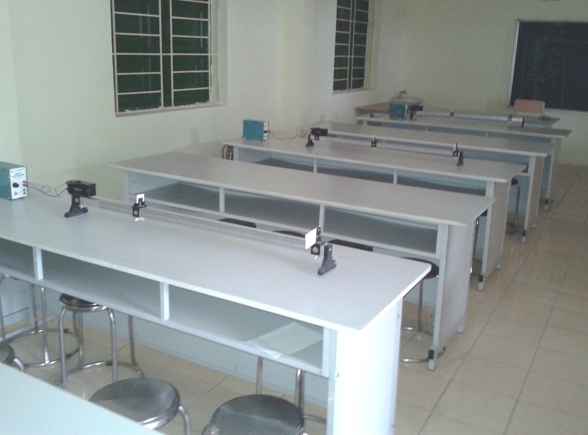 Bàn thí nghiệm lý là danh mục thiết bị trường học được dùng trong các phòng thí nghiệm lý của học sinh THCS và THPT, bàn có KT 2200x600x770mm khung bàn bằng sắt sơn tĩnh điện, mặt bàn bằng Melamin dày 1.8cm. yếu bàn và hồi bàn bằng gỗ Melamin, bàn có chổ để lắp Nguồn điện một chiều, các ổ cắm và công tắc để lấy điện cho các bài thực hành thí nghiệm.