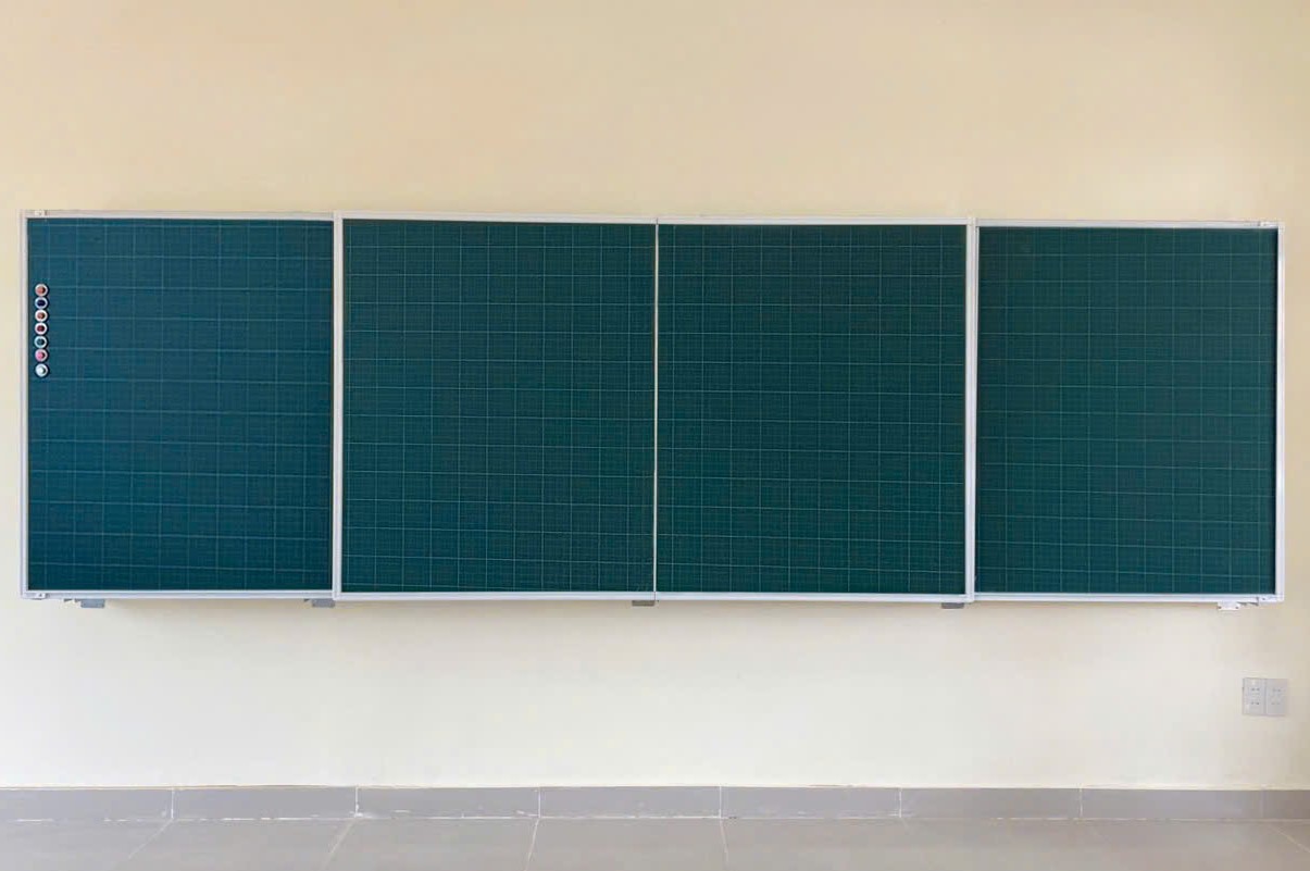 Đây là mẫu bảng viết đời mới nhất được nhiều trường sử dụng từ mầm non đến đại học vì lợi ích là lồng ghép được thiết bị như tivi, màn hình tương tác phía sau bảng, khi cần dùng bảng viết thì kéo bảng thành 1 khối, khi cần thiết bị trình chiếu thì kéo bảng ra hai bên