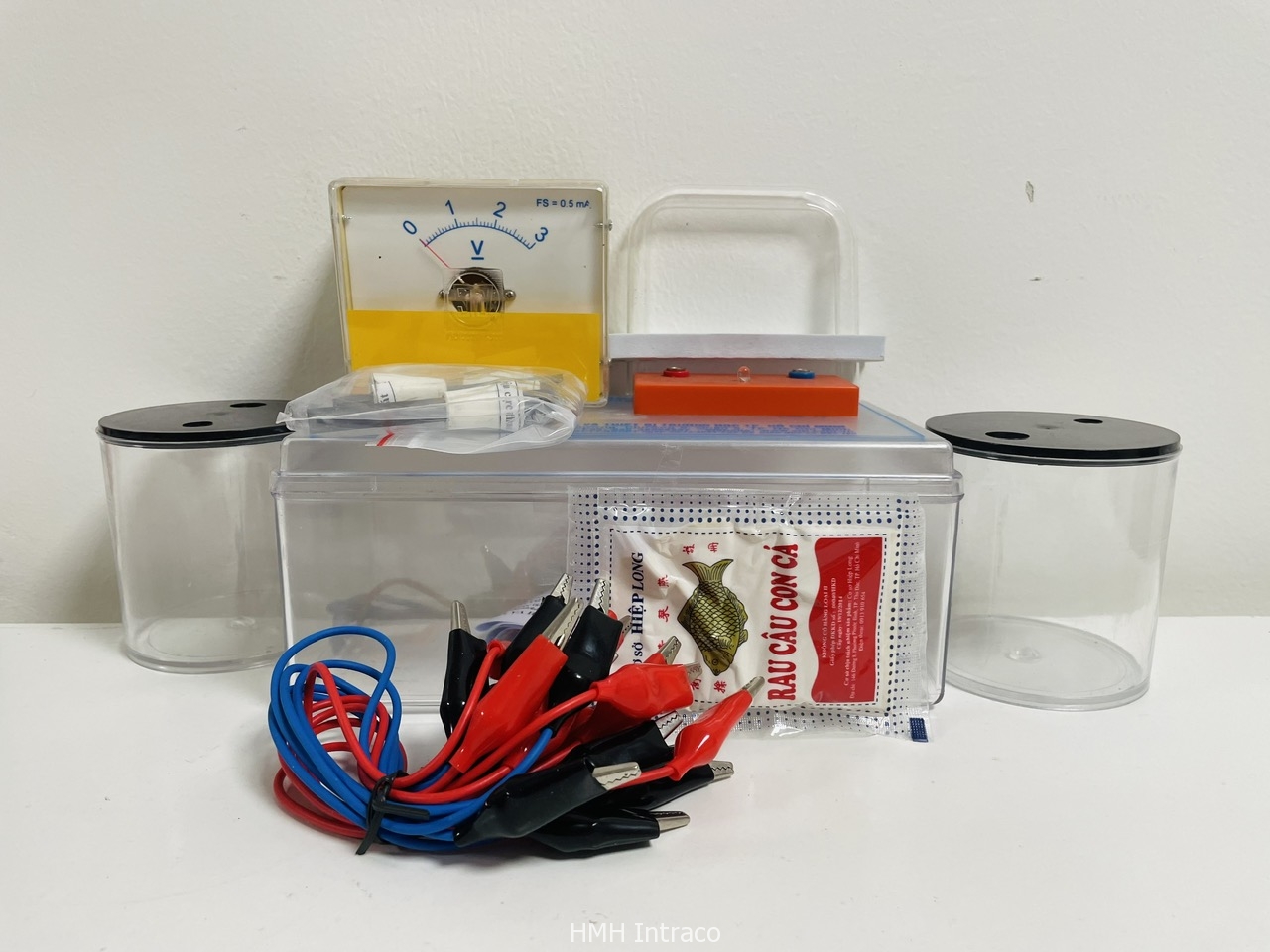 - Điện cực lá zinc, copper, aluminium, iron kích thước (3x10x80)mm và điện cực than chì kích thước (8x80)mm được gắn trong nút cao su d =18mm.
