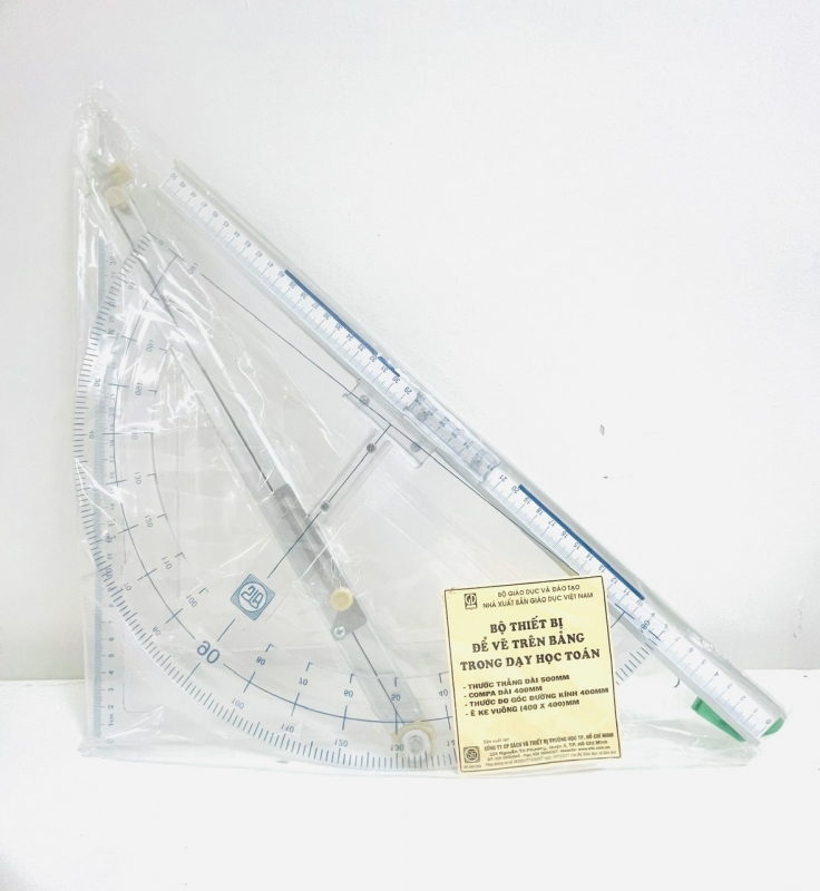 - 01 chiếc ê ke vuông, kích thước (400x400)mm; vật liệu bằng nhựa có độ dày 3mm, không cong vênh, màu sắc tươi sáng, an toàn với người sử dụng.
