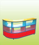 Giá bán hàng là giá có hình quây góc bán hàng. phía trong chia ba tầng, mặt trước tầng dưới che kín, hai mặt trên dùng mê ca che để thấy hàng trưng bày phía trong, KT 120 sâu 25cm cao 80cm, giá được làm bằng gỗ MDF dầy 1,5cm sơn màu kết hợp, giá có bánh xe di chuyển