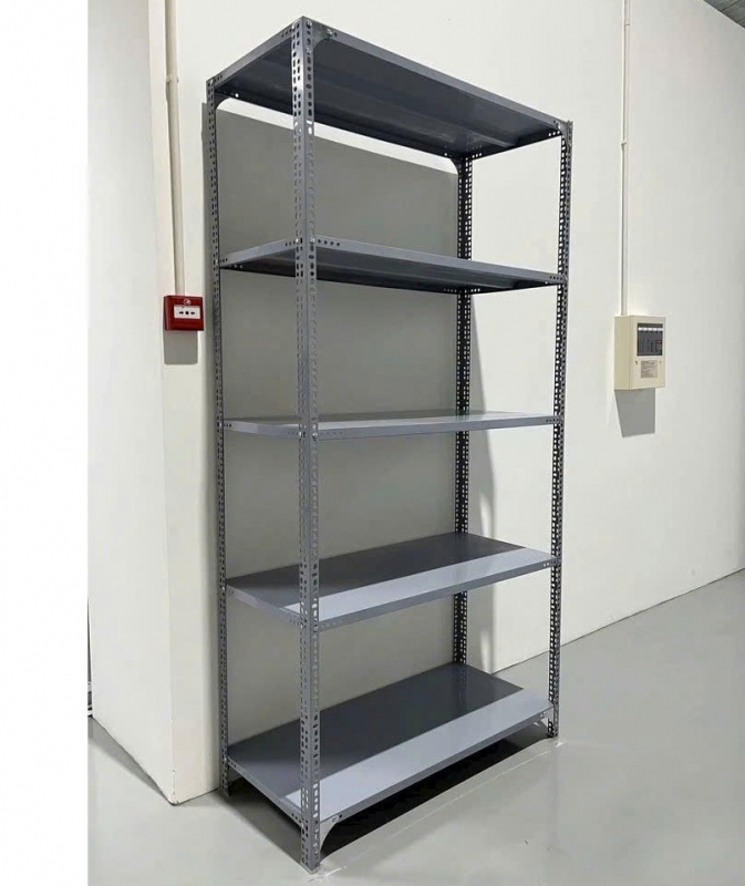 Giá có 1 khoang và 5 tầng để đồ. Được liên kết với nhau bằng rất nhiều bulon và ốc vít. Các góc chính của giá có gia cố bản lề chịu lực tạo cho giá có kết cấu chắc chắn.