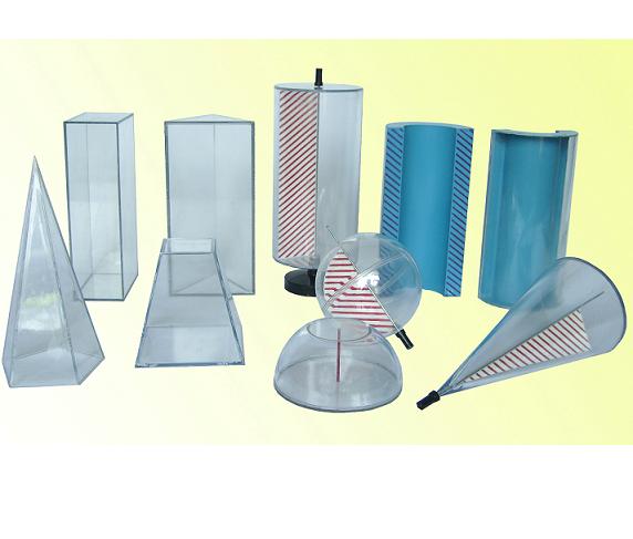 Bao gồm các khối đa diện (hình hộp, hình chóp, hình lăng trụ) có kích thước cạnh đáy tối thiểu 100 mm, chiều cao 200 mm; khối tròn xoay (hình trụ, hình nón, hình cầu) có đường kính đáy 100 mm, chiều cao 200 mm.
