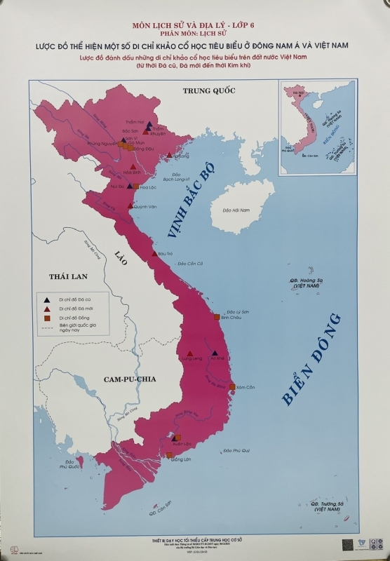 - 01 lược đồ đánh dấu những di chỉ khảo cổ học tiêu biểu trên đất nước Việt Nam (từ thời Đá cũ, Đá mới đến thời Kim khí);