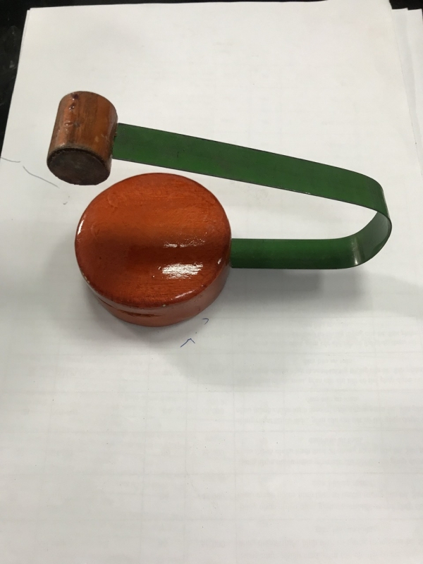 Theo mẫu của nhạc cụ dân tộc, gồm hai mảnh gỗ hình tròn bằng gỗ cao su qua tẩm sấy phủ PU 3 lớp, đường kính 60mm, cao 30mm, được liên kết bằng dây thép chính phẩm rộng 16mm