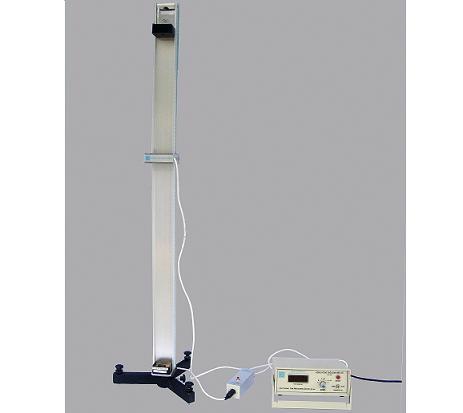 + Giá đỡ bằng nhôm định hình hình chữ H thẳng đứng có độ dày nhôm 1,2mm kích thước (30x59xl000)mm. Trên giá nhôm có thước đo từ 0 - 990mm độ chia nhỏ nhất 1mm, có dây dọi, được gắn trên đế ba chân có vít điều chỉnh thăng bằng, phía trên có nam châm điện để giữ vật rơi.