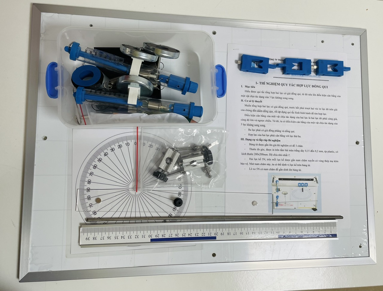Thiết bị tổng hợp hai lực đồng quy và song song nằm trong danh mục thiết bị thí nghiệm môn vật lý.