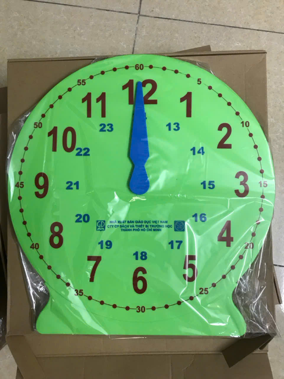 Mô hình đồng hồ đường kính 400mm có kim giờ, kim phút được kết nối bằng bánh răng có thể quay đồng bộ với nhau, trên mặt đồng hồ có 60 vạch để chỉ 60 phút. Vật liệu bằng nhựa dày 2.5mm có móc treo và gắn được lên bảng từ bằng 4 viên nam châm đường kính 32mm