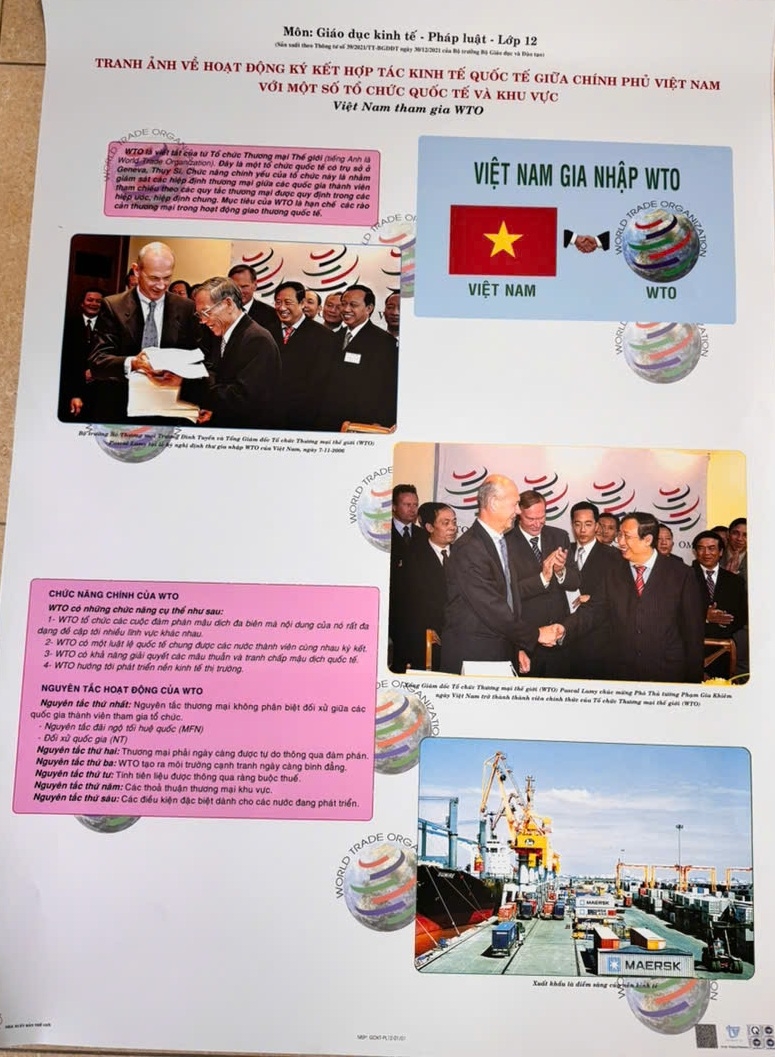 Tranh ảnh về hoạt động kí kết hợp tác kinh tế quốc tế giữa chính phủ Việt Nam với 1 số tổ chức quốc tế và khu vực là thiết bị môn giáo dục kinh tế pháp luật Theo thông tư số 39/2021/TT-BGDĐT ngày 30/12/2021 của Bộ trưởng Bộ Giáo dục và Đào tạo